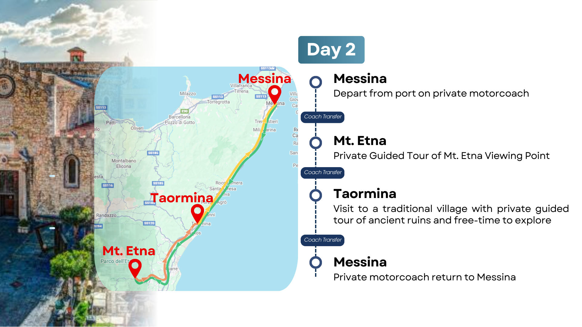 Private SailAway Crew shore excursions are scheduled for Messina, Santorini, & Naples. (See Itinerary above for details).
